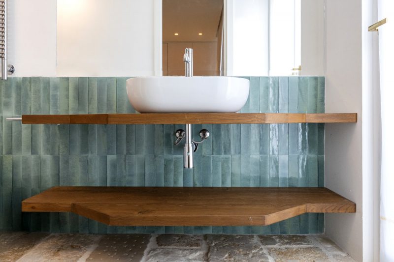 Arredo bagno in legno rovere massello.